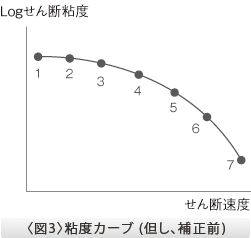 ○図.7は入り口効果を補正した”せん断粘度”と”せん断速度”の相関グラフです
