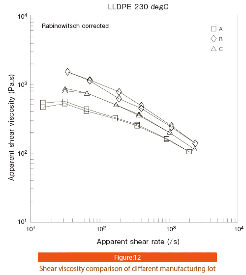 | Evaluation of LLDPE | The same product, but from different manufacturing batch behaved different in the processing. The purpose is to find out if the rheometer can tell the difference. |