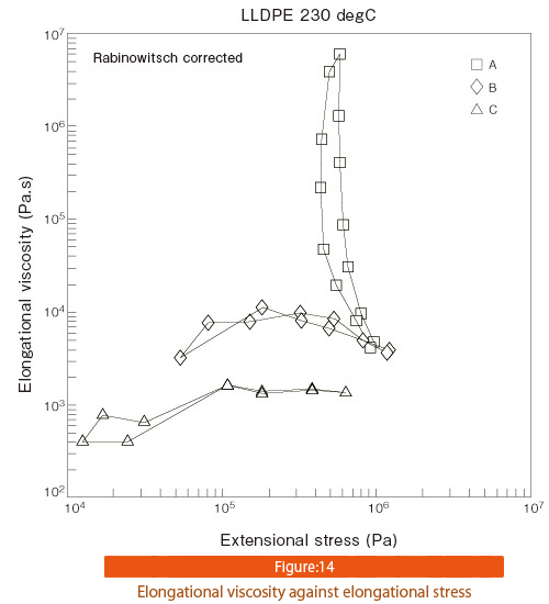The【Figure14】is the one of elongational viscosity against elongational stress.