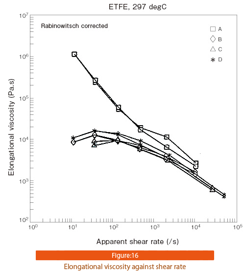 The【Figure13】is elongational viscosity plotted against shear rate.