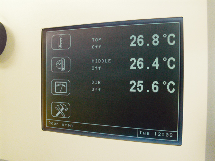 Even the computer is not connected, you can still control the temperature and the piston of the rheometer manually. This makes preheating of the system easy and helps in case of emergency. We support weekly timer to preheat the barrel from the touch panel.